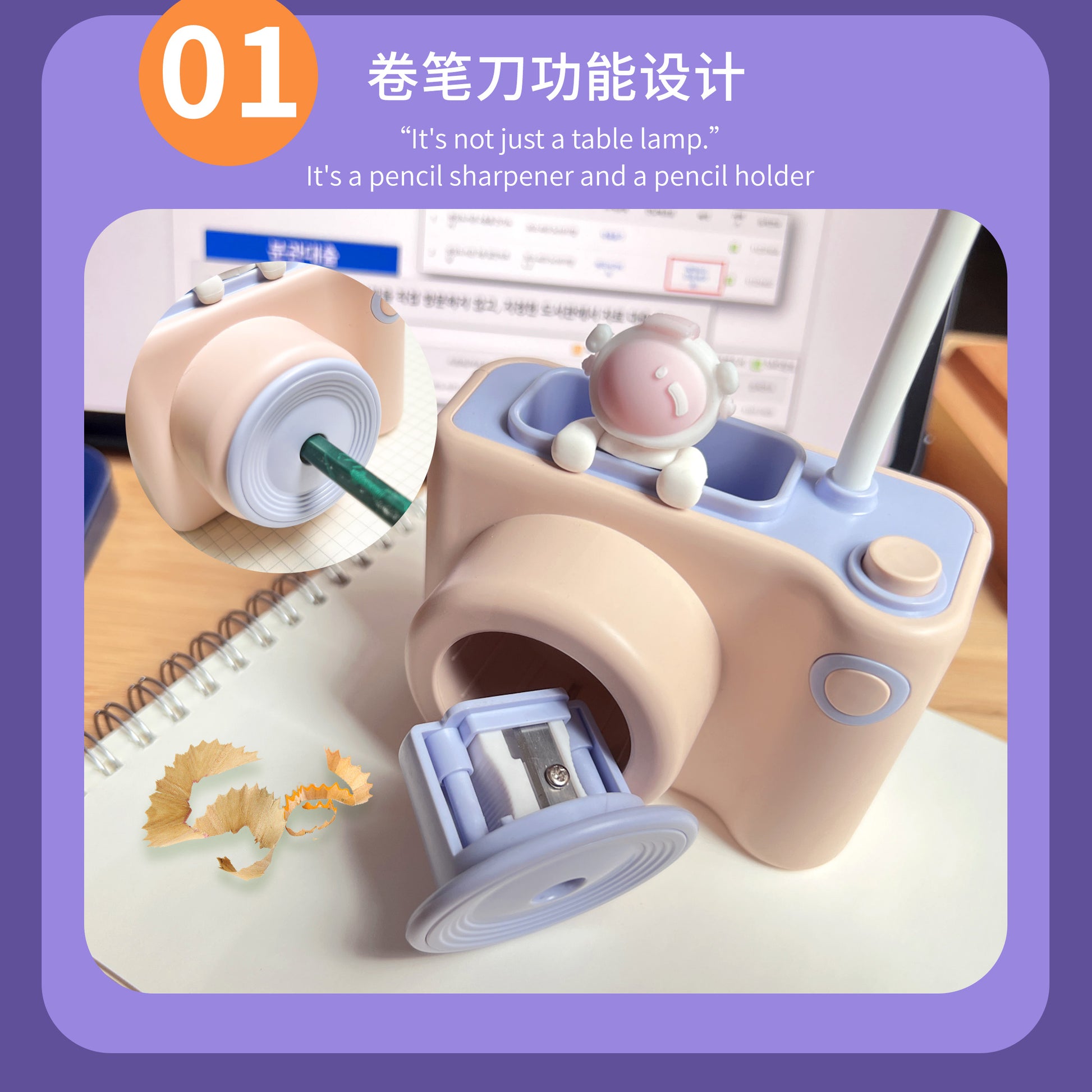 - Pencil sharpener: The lamp also includes a front-side pencil sharpener, so you can keep your pencils sharp and ready to use at all times.